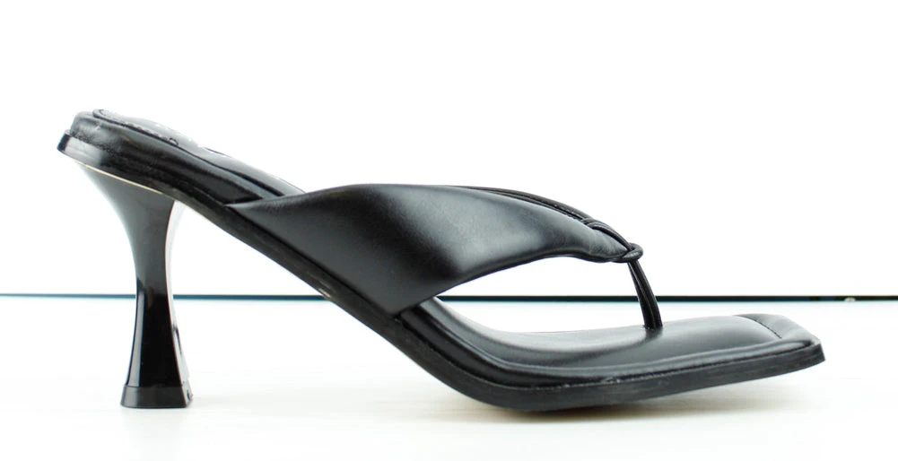 Revive 01 is the perfect casual shoe for brunch or a night out, featuring a low heel with thong style bands. approx. 2 inch heel.