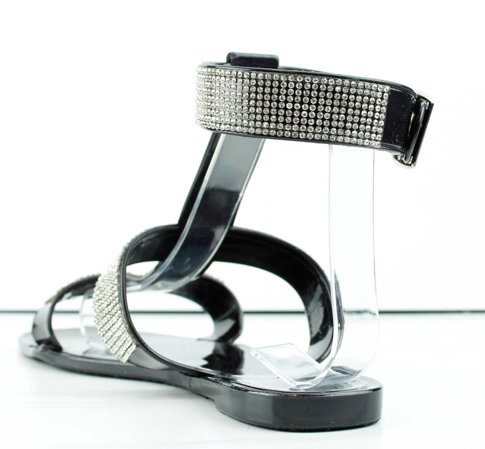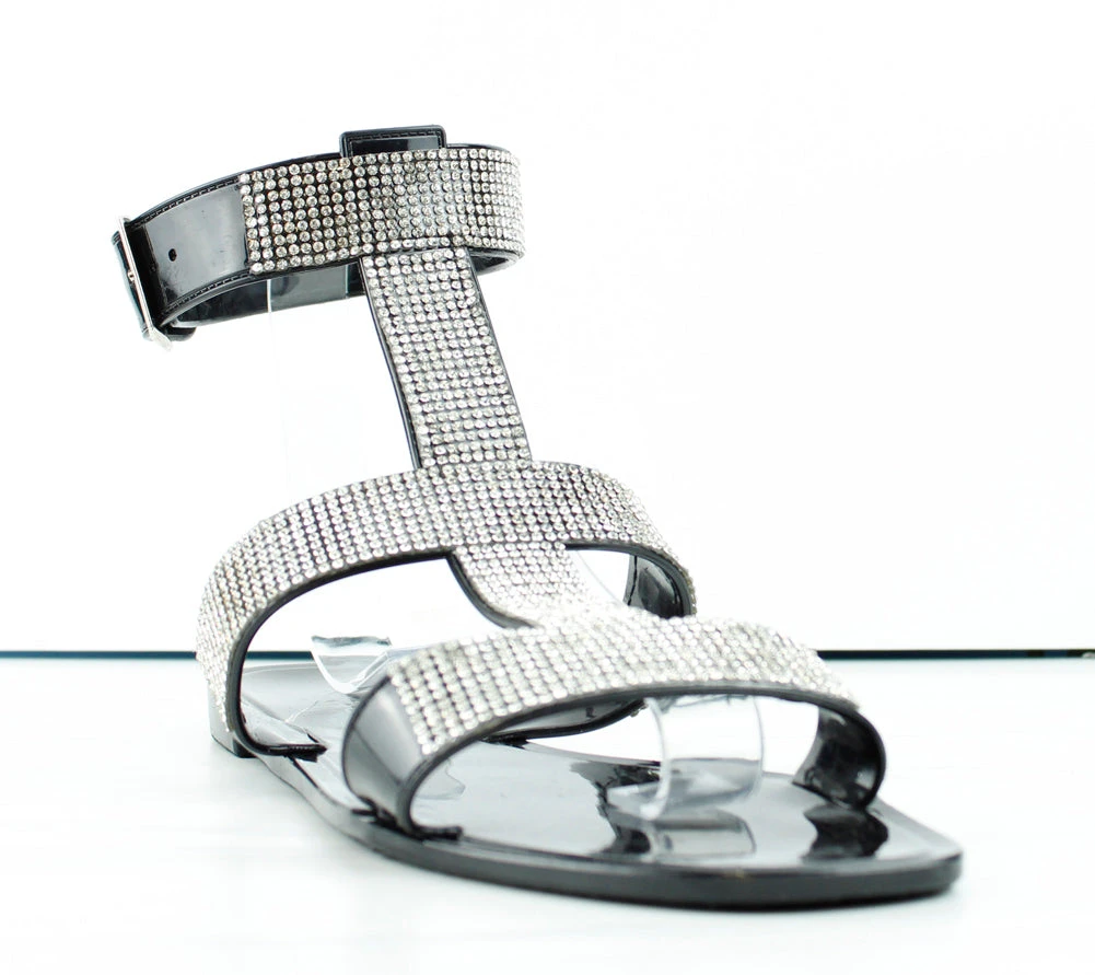 Add a sparkle to any outfit with these charming flat sandals! Featuring beautiful rhinestone accents, and buckle closure.Â