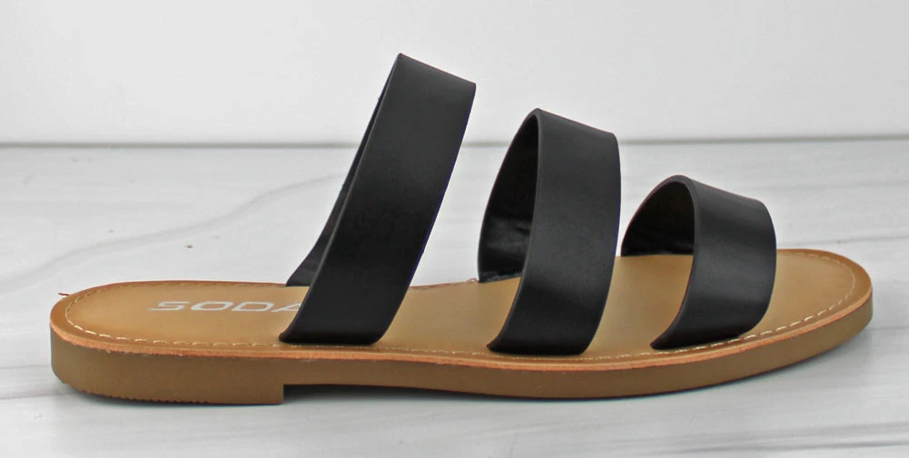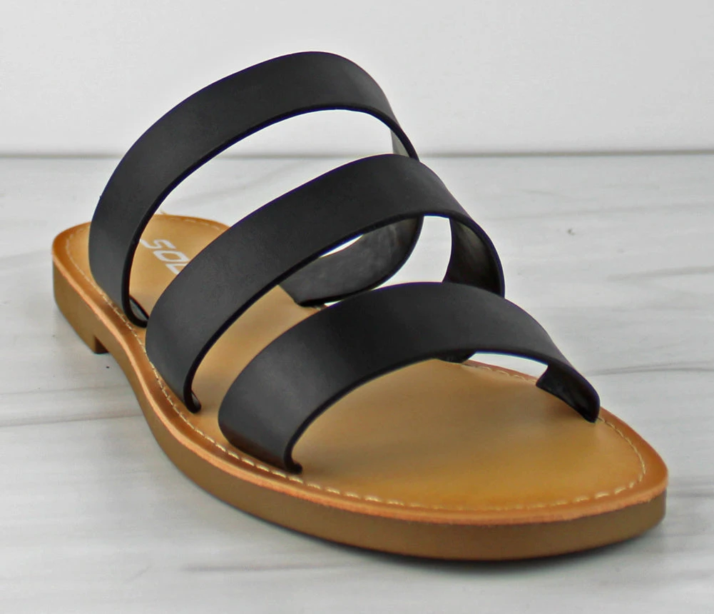 A unique and simple shoe goes a long way! This triple banded slip on sandal is for the girl who wants to make a statement with her outfit! Perfect for a summer day where you need a slip on!Â