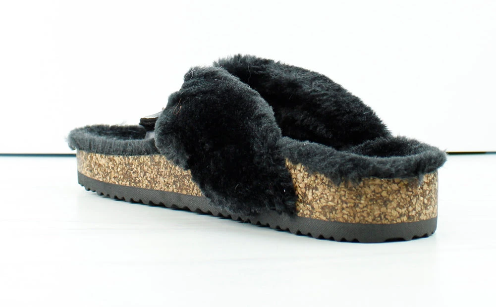 Talk about comfort! The thong-style faux fur sandal is cozy essential you’ll be reaching for morning after morning. Crafted with fluffy, faux fur straps and topsole, this slip-on staple is grounded in a tough-wearing cork screw sole that’s made for mileage beyond the house.