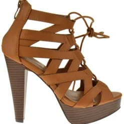 Forever BLOSSOM 16 Womens Cut Out Lace Up Zipper Gladiator High Heels