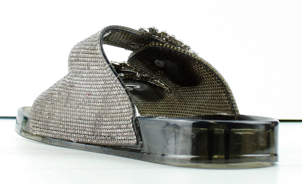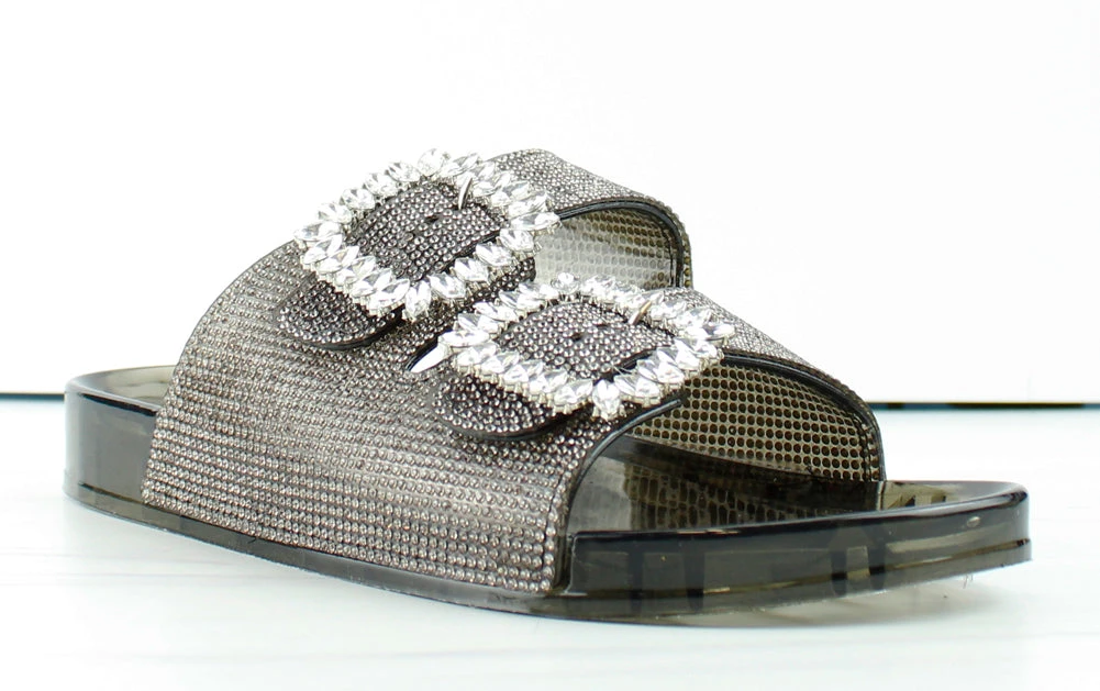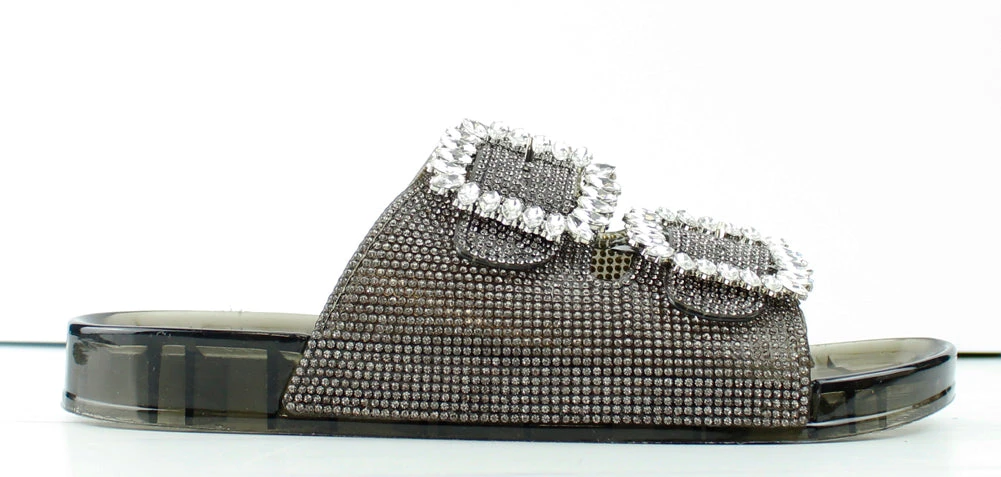 Forever Glitz 80 Womens Gem Embellished Double Buckle Slides
