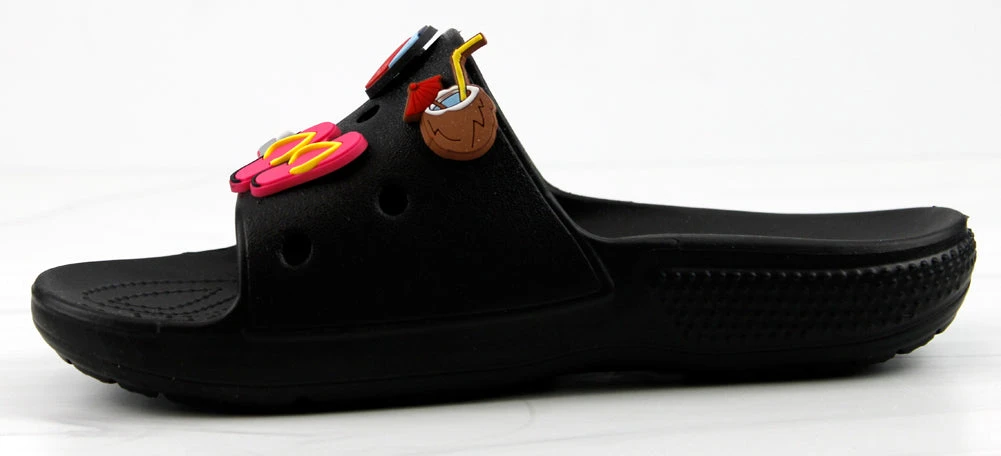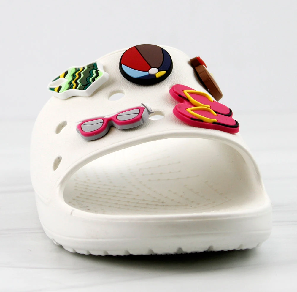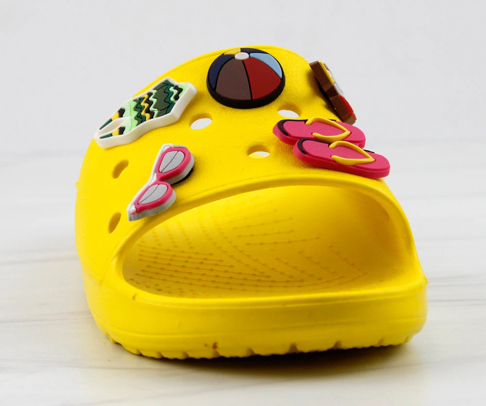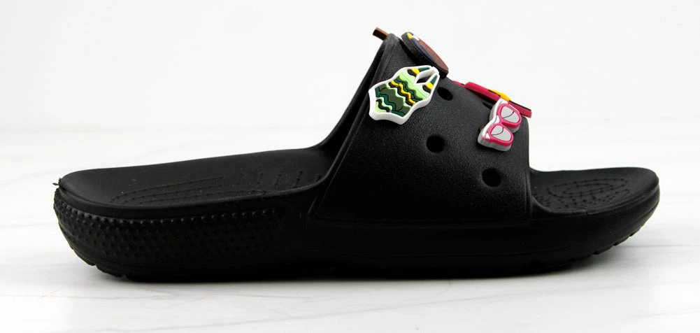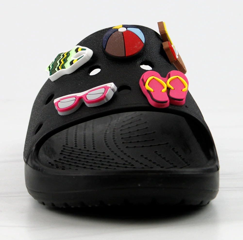 Our style FUN is a fun and stylish twist on your classic clogs! Now we have clogs in a slide form that still includes your slots for charms! These decretive clogs include these adorable charms!