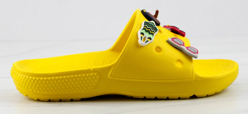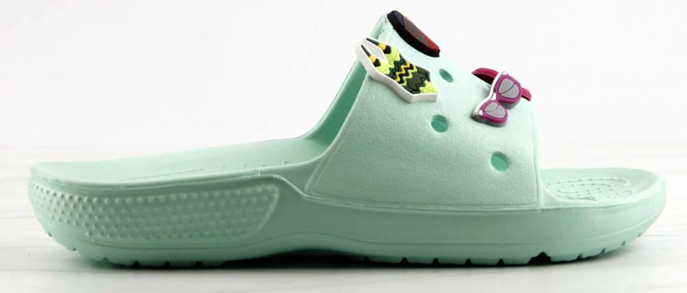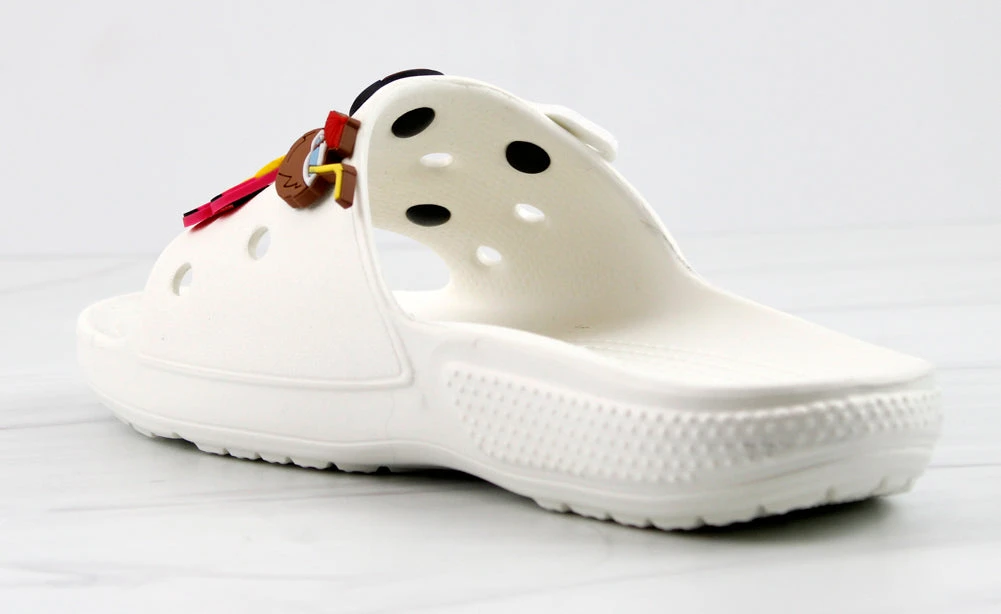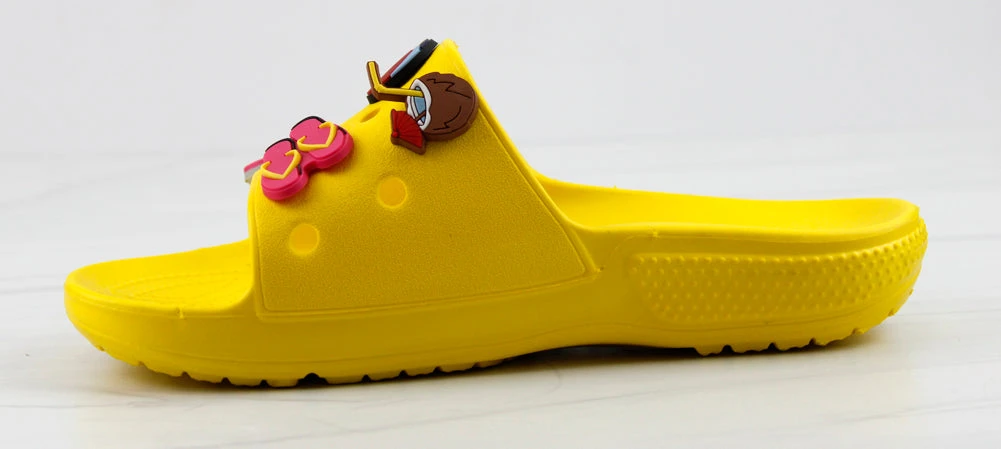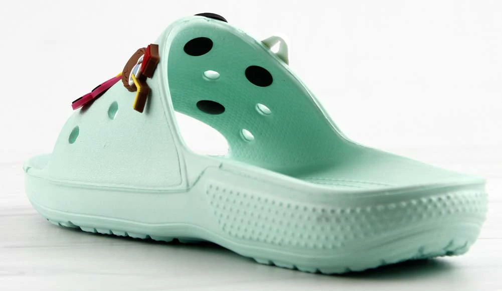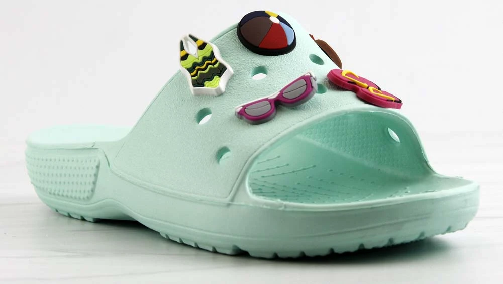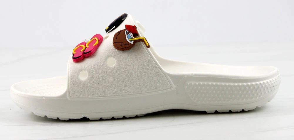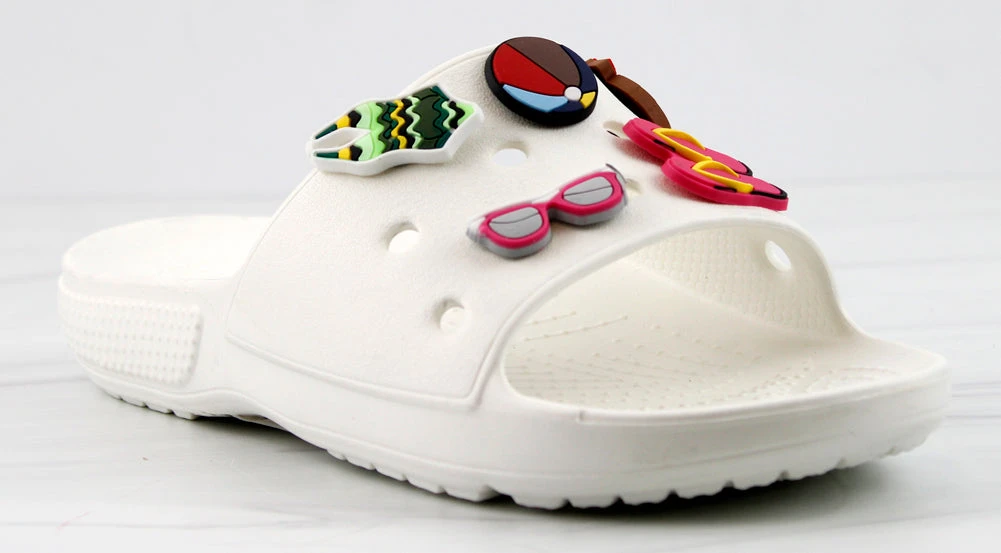 Our style FUN is a fun and stylish twist on your classic clogs! Now we have clogs in a slide form that still includes your slots for charms! These decretive clogs include these adorable charms!