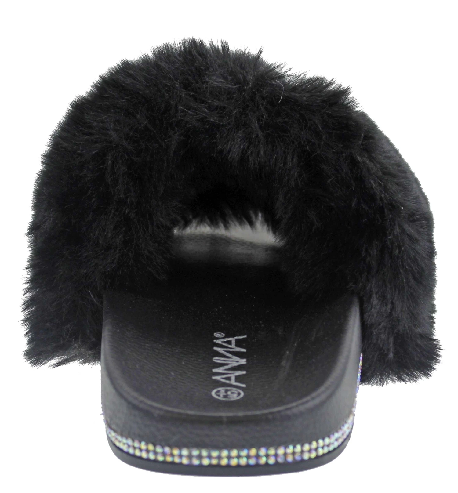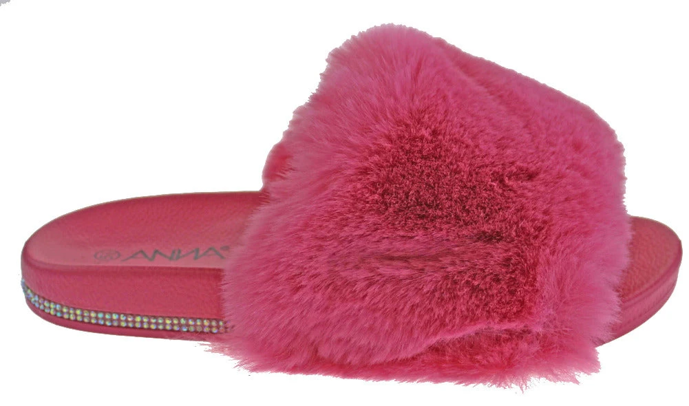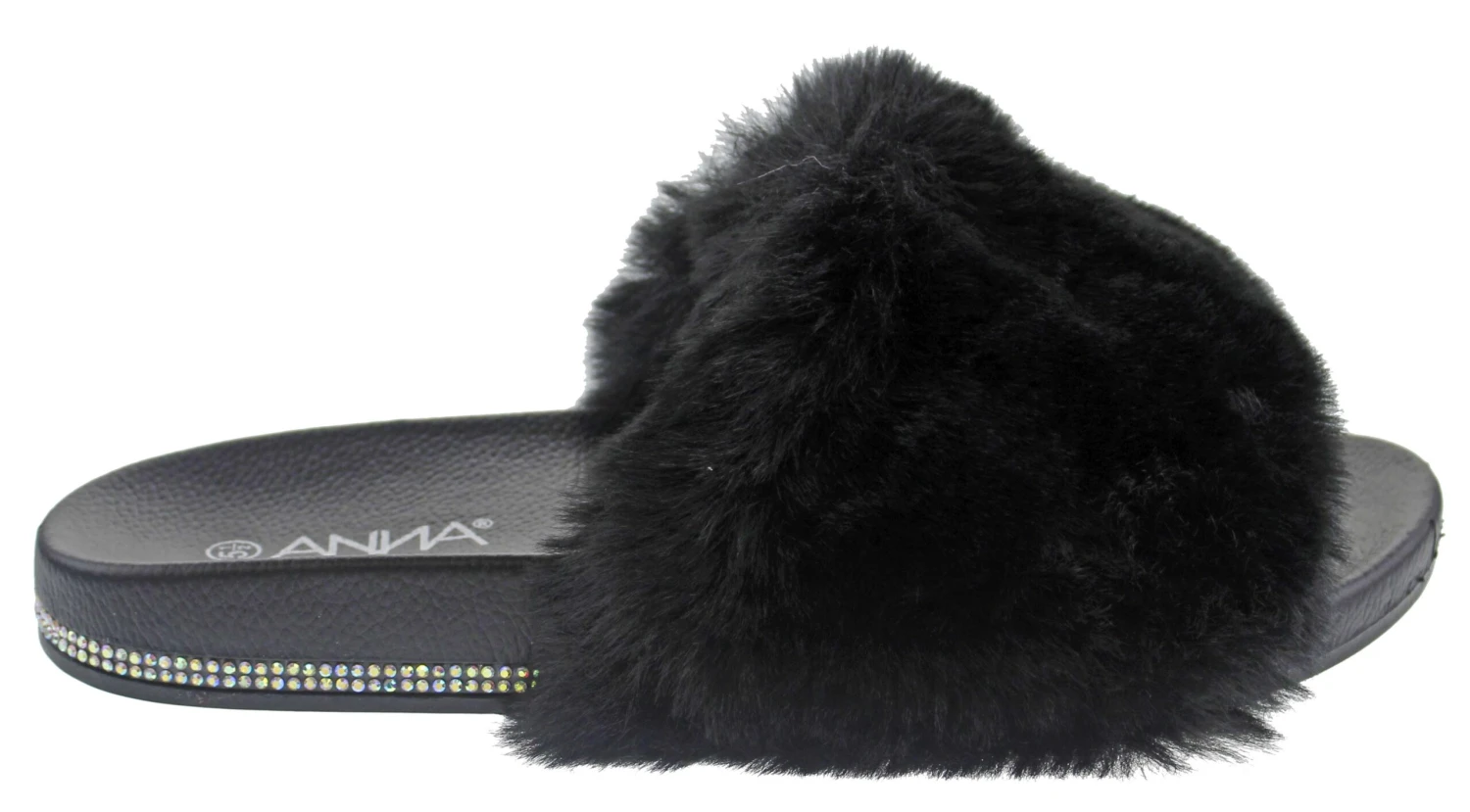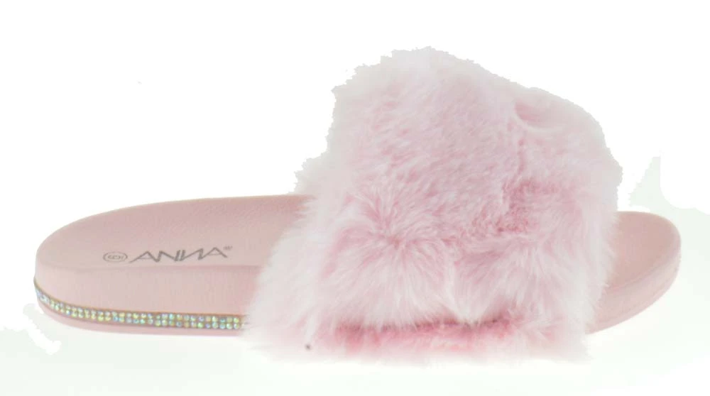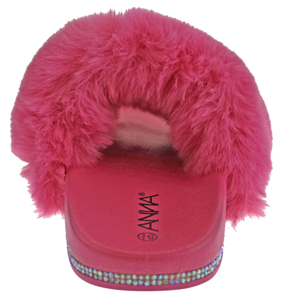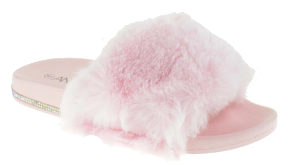 These rhinestone embellished fur slides are perfect for showing off and they exemplify comfort!