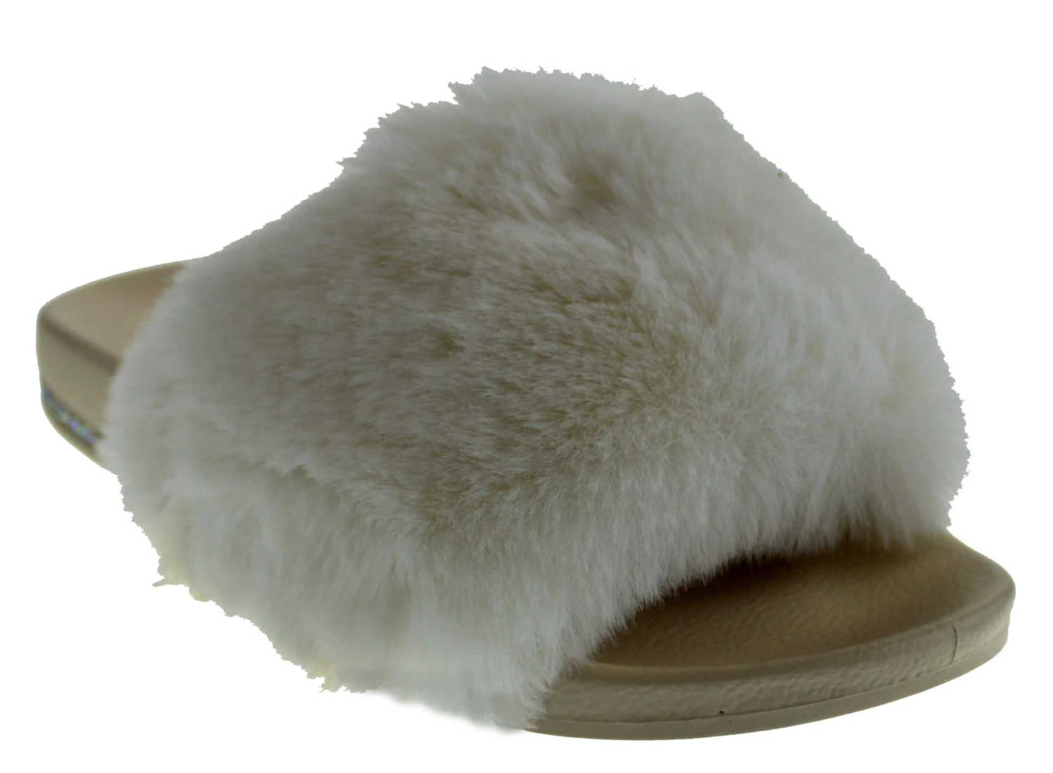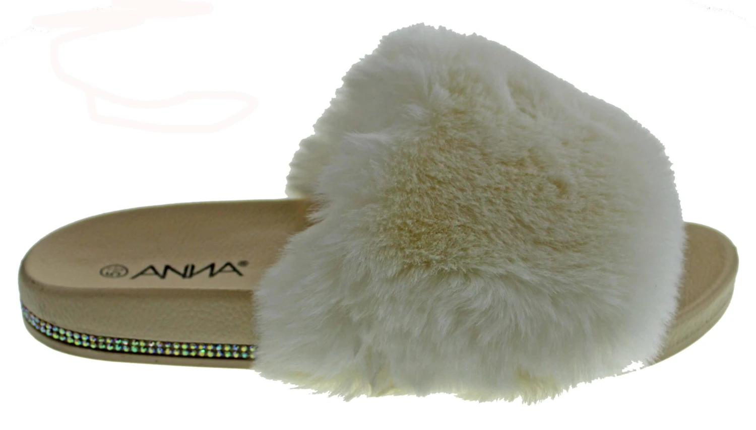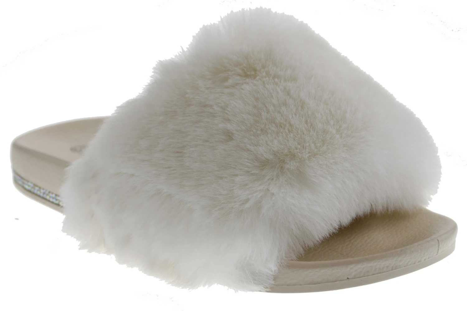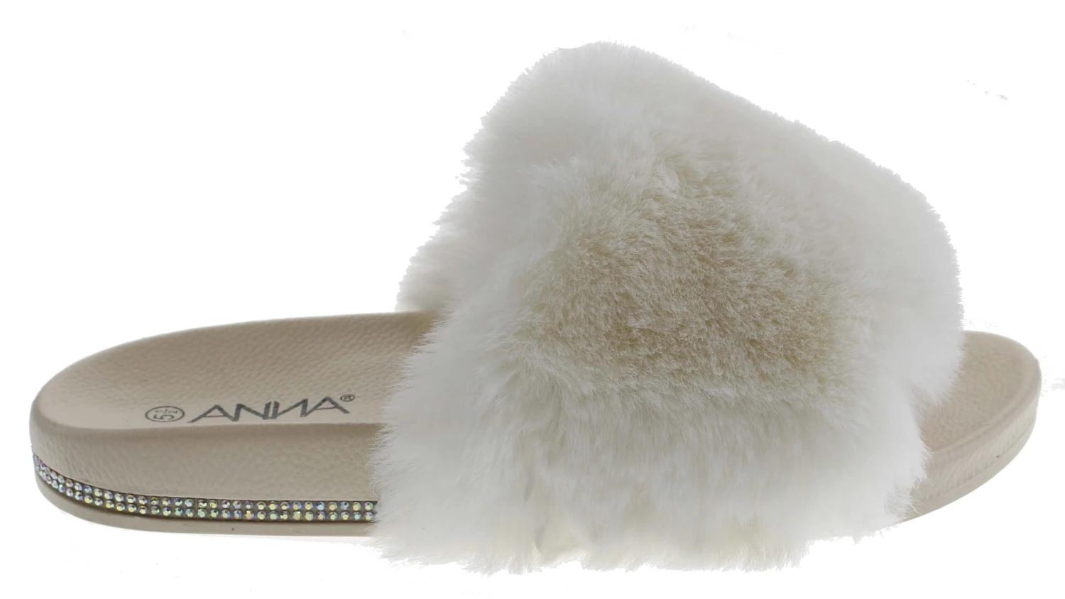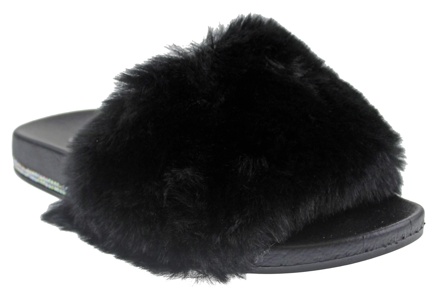 These rhinestone embellished fur slides are perfect for showing off and they exemplify comfort!