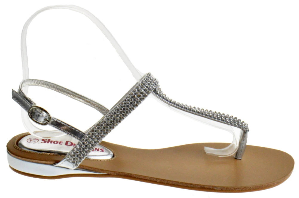 Kylie 08 Gladiator Rhinestone Thong Flat Sandals