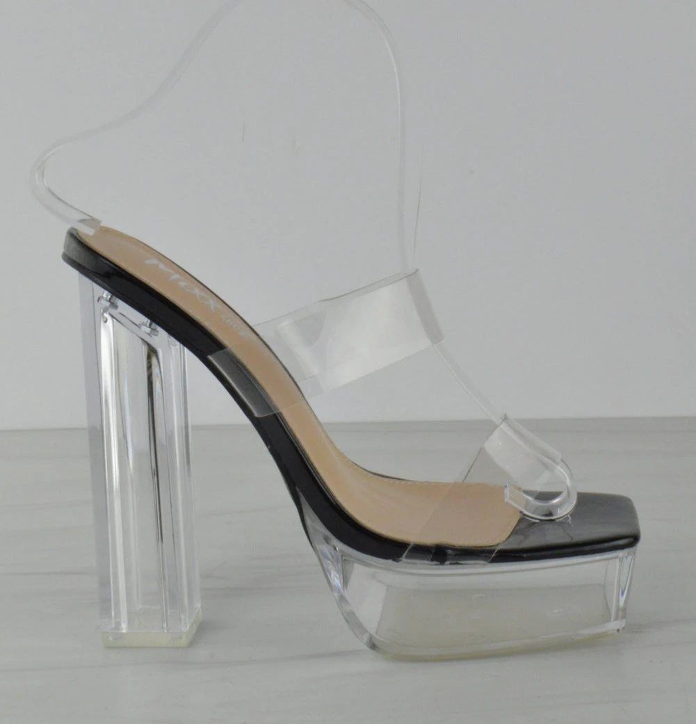Make a serious style statement this season in these heeled sandals. Featuring a clear design with a chunky platform pointed heeled sole, they’re sure to steal some stares.