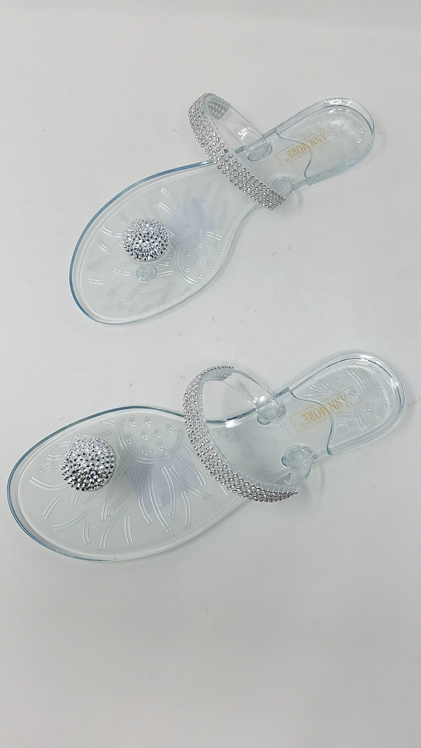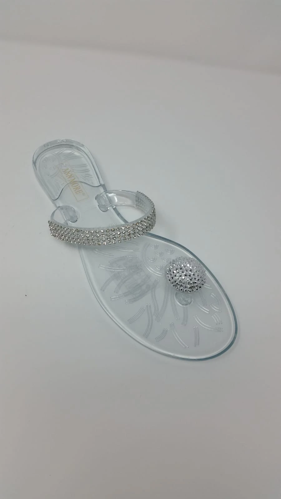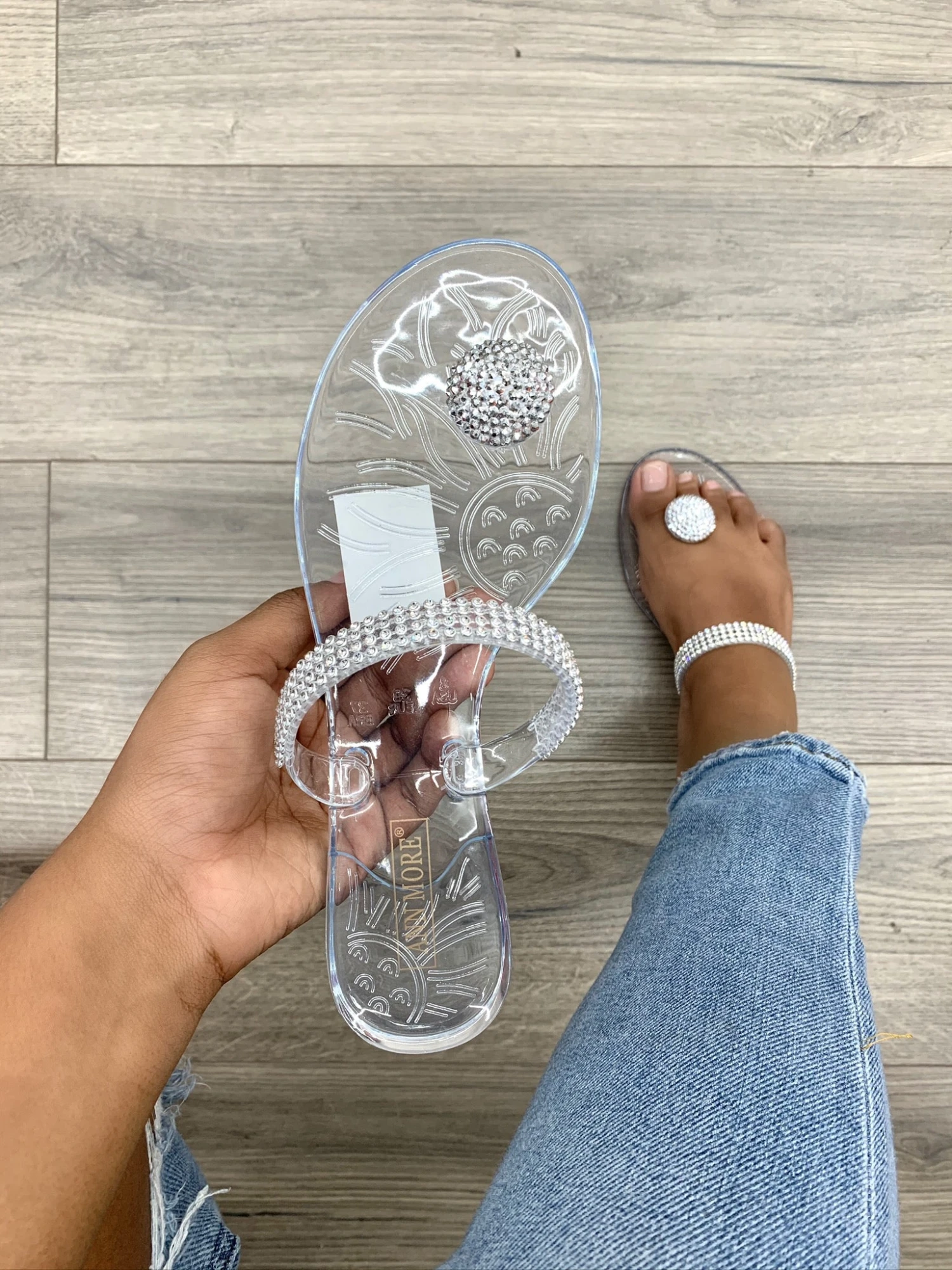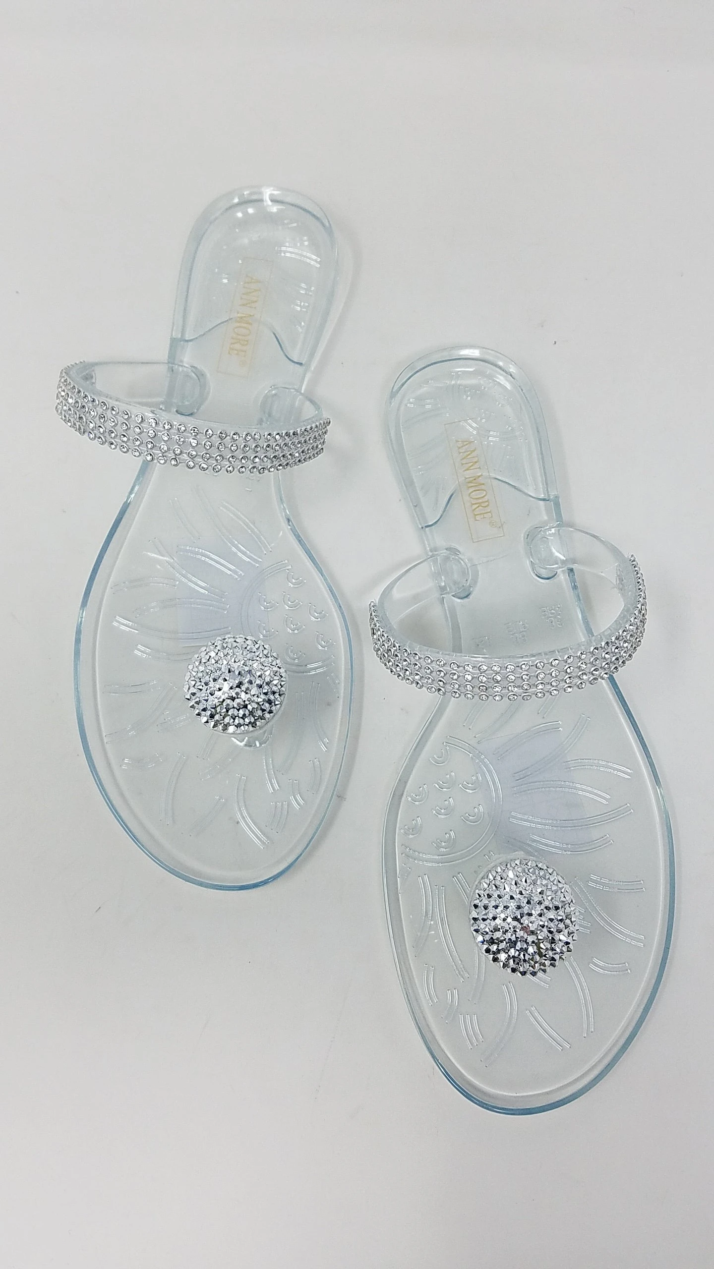 Have everyone’s eyes set on your bejeweled feet with these shining beauties. These clear jelly sandals feature rhinestone embellished single strap and a rhinestone-encrusted dome charm on the toe.
